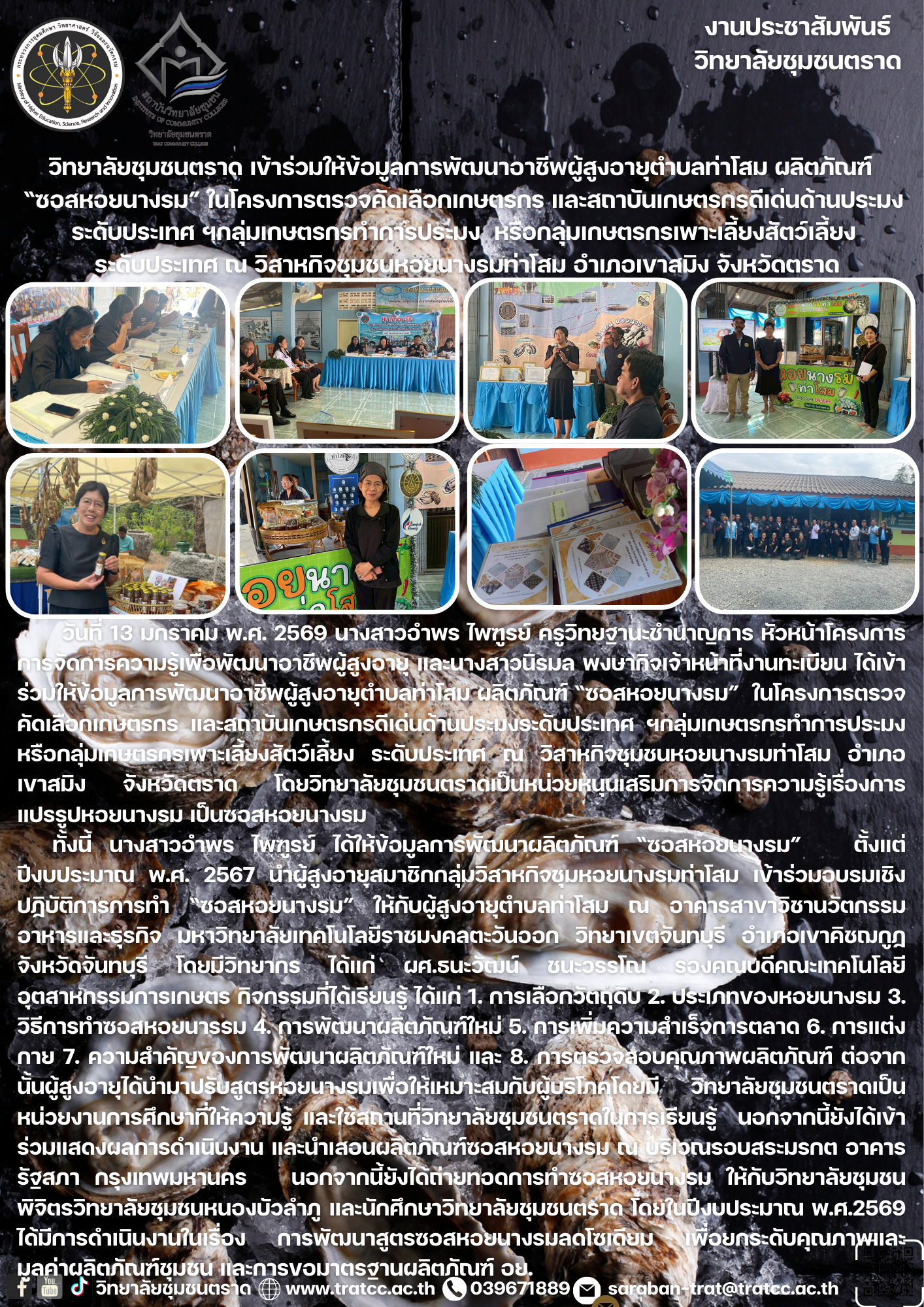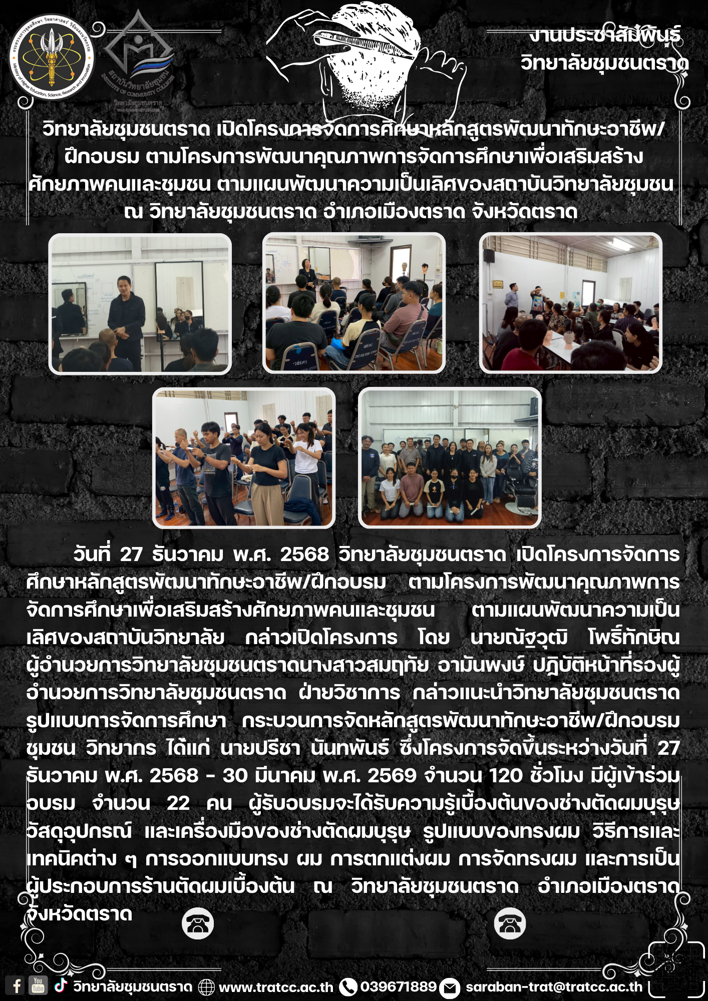 16 ต.ค. 2568 ประกาศวิทยาลัยชุมชนตราด เรื่อง ประกาศรับสมัครพนักงานจ้างเหมาบริการ ประจำปีงบประมาณ 2569