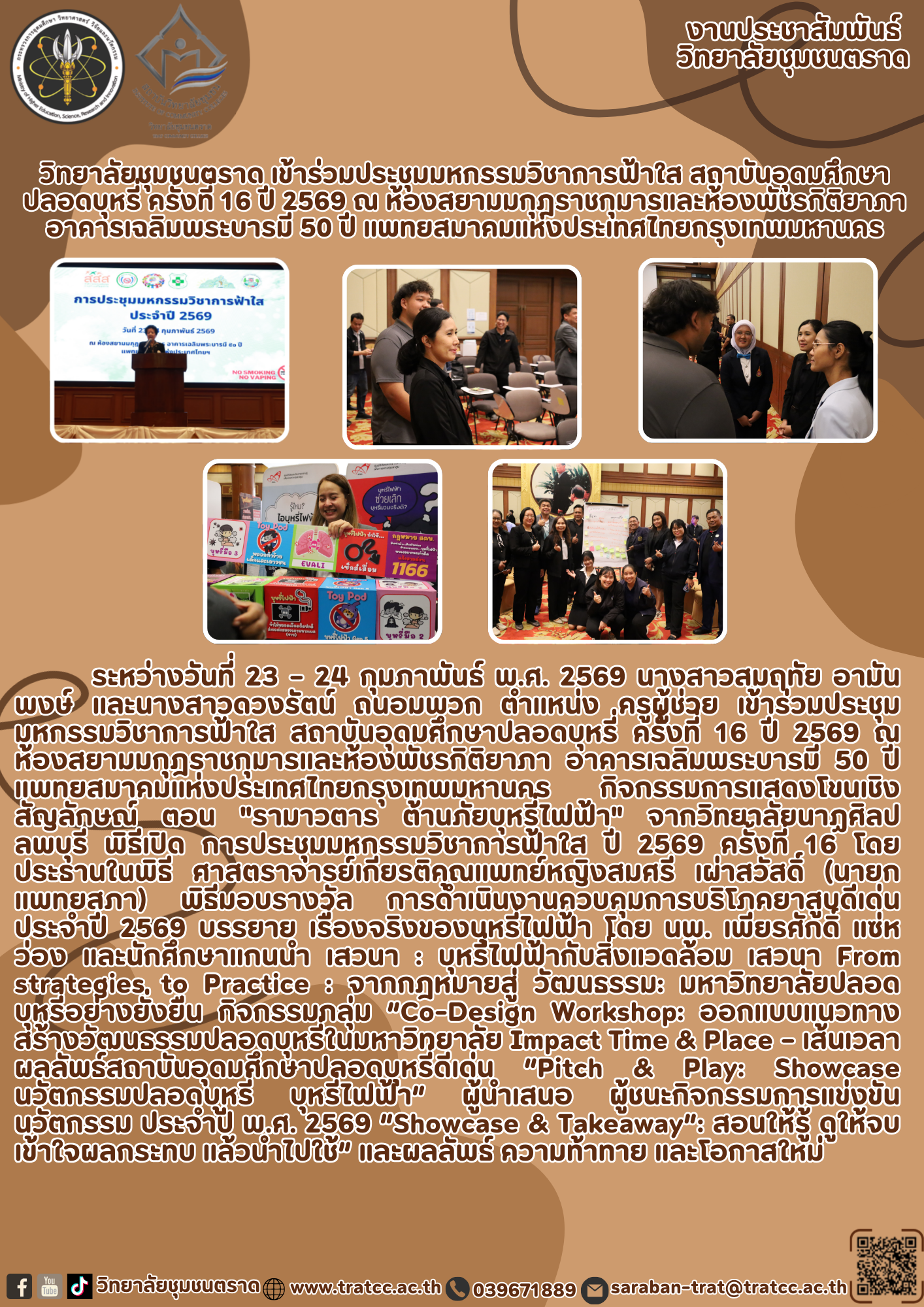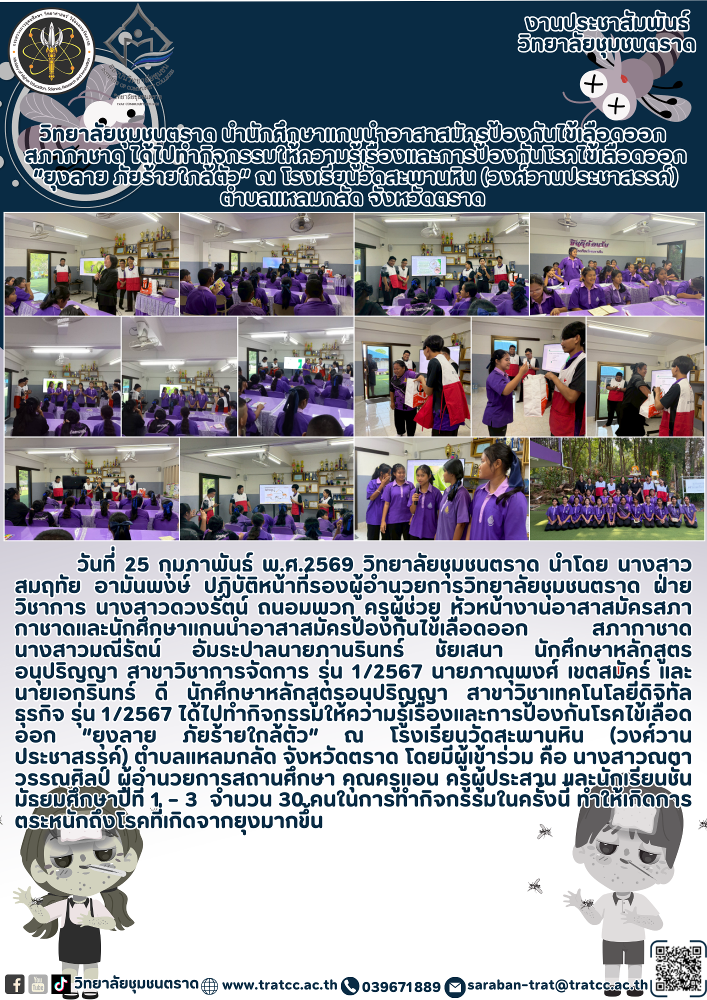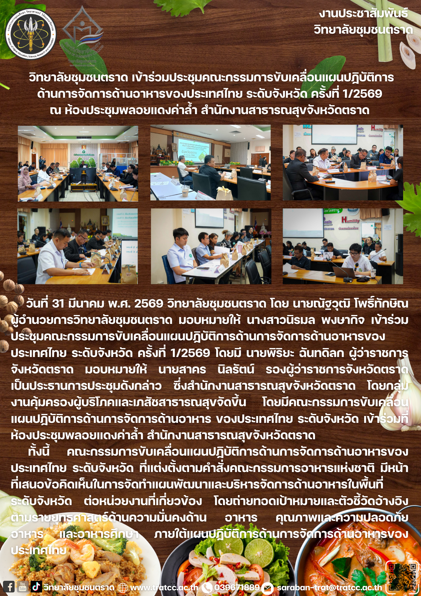 18 ก.พ. 2569 ประกาศวิทยาลัยชุมชนตราด เรื่อง ประกาศรับสมัครเจ้าหน้าที่โครงการปฏิบัติงานคลินิกเทคโนโลยี ประจำปีงบประมาณ 2569