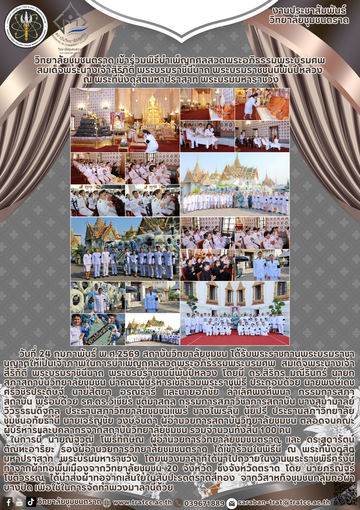 วิทยาลัยชุมชนตราด เข้าร่วมพิธีวางพานพุ่มดอกไม้ ถวายราชสักการะพระบาทสมเด็จพระบรมชนกาธิเบศร มหาภูมิพลอดุลยเดชมหาราช บรมนาถบพิตร “พระบิดาแห่งมาตรฐานการช่างไทย” ณ ศาลาประชาคมจังหวัดตราด