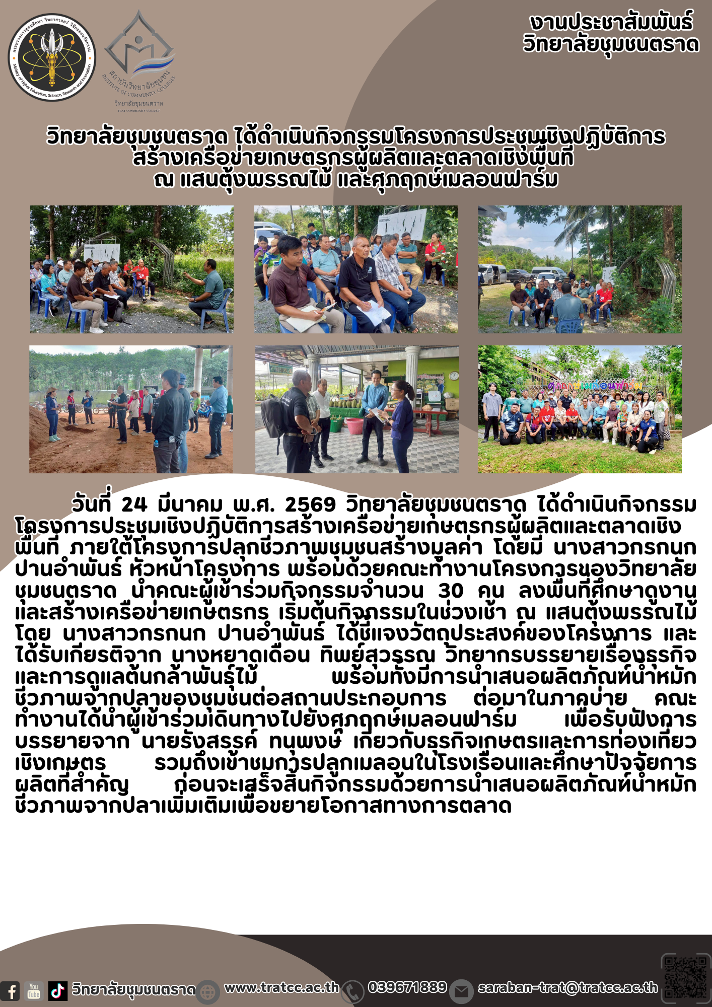 วิทยาลัยชุมชนตราด โดยสาขาวิชารัฐประศาสนศาสตร์นำนักศึกษาลงพื้นที่เรียนรู้นอกห้องเรียน ณ ตำบลบ่อพลอย อำเภอบ่อไร่ จังหวัดตราด