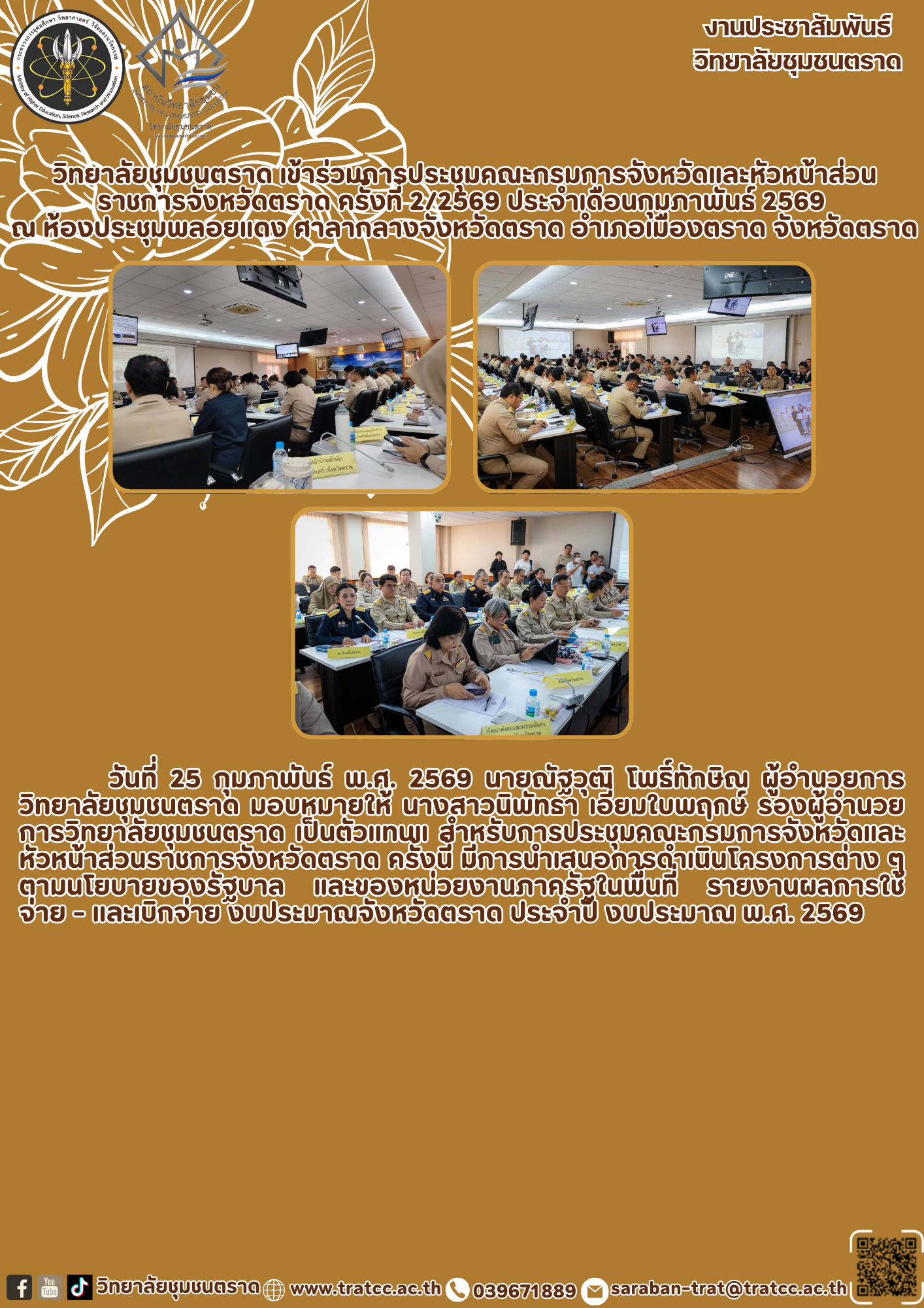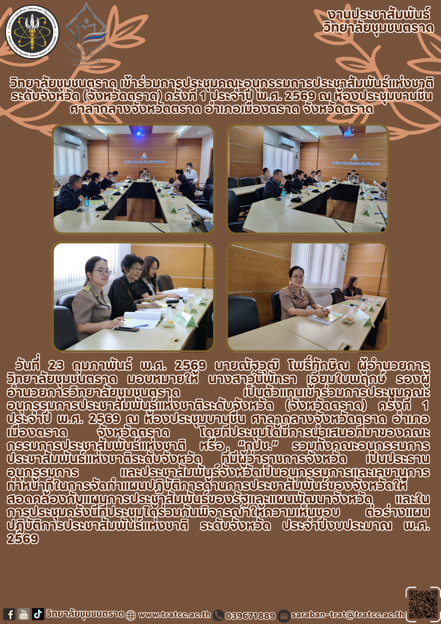 18 ก.พ. 2568 ประกาศคณะกรรมการสรรหาผู้อำนวยการวิทยาลัยชุมชนตราด เรื่อง การสรรหาผู้อำนวยการวิทยาลัยชุมชนตราด