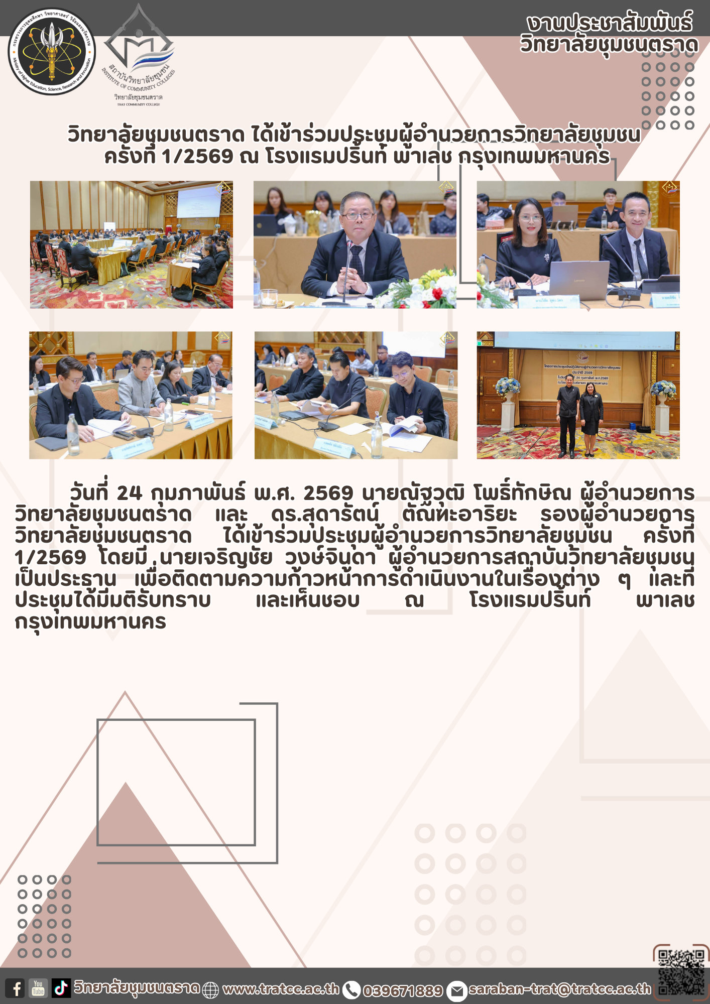 วิทยาลัยชุมชนตราด ได้เข้าร่วมประชุมผู้อำนวยการวิทยาลัยชุมชน ครั้งที่ 1/2569 ณ โรงแรมปริ้นท์ พาเลช กรุงเทพมหานคร