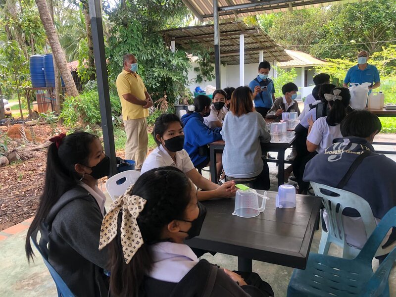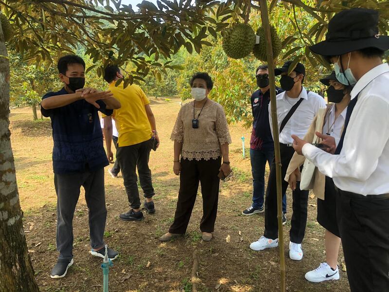 ในวันที่ 28 มีนาคม 2565 วิทยาลัยชุมชนตราด นำโดย ดร.กรรณิกา สุภาภา ผู้อำนวยการวิทยาลัยชุมขนตราด พร้อมด้วย คณะครูวิทยาลัยชุมชนตราด นำนักศึกษาโครงการทุนนวัตกรรมสายอาชีพชั้นสูง หลักสูตรอนุปริญญา สาขาวิชาเกษตรและการแปรรูป เข้าศึกษาดูงานด้านการเกษตรและการแปรรูป ณ สวนวิโรจน์ (ชะนีเกาะช้าง) อำเภอเกาะช้าง จังหวัดตราด โดยศึกษาเรียนรู้เกี่ยวกับทุเรียนชะนีเกาะช้าง (ขึ้นทะเบียนสินค้า GI) และคลังมะพร้าวเกาะช้าง เพื่อให้นักศึกษาได้นำแนวคิดในการปลูกทุเรียน การบริหารจัดการทำสวนทุเรียน และการทำผลิตภัณฑ์จากมะพร้าวเกาะช้าง มาเป็นแนวทางในการประยุกต์ในการประกอบอาชีพต่อไป
