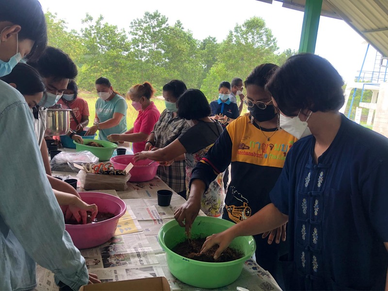 ในวันที่ 20 เมษายน 2565 คณะทำงานโครงการขับเคลื่อนการบริหารจัดการขยะรูปแบบเศรษฐกิจหมุนเวียน (Circular Economy) วิทยาลัยชุมชนตราด โดย นางสาวอรดี ตรีวิสูตร หัวหน้าโครงการ พร้อมด้วย นายวุฒิ ชะนา นางจุฑามาส ตรีรัตน์ฤดี นางศิริรักษ์ วรรณรัตน์ นางสาวสมฤทัย อามันพงษ์ และนางสาวสุภากาญจน์ พรหมน้อย ลงพื้นที่จัดกิจกรรมโครงการอบรมเชิงปฏิบัติการ “ประดิษฐ์กระถางจากวัสดุเหลือใช้” โดยมี นางสาวดารารัตน์ นิยมรัตนา เป็นวิทยากร โดยนำเศษใบไม้ กก และขี้เลื่อย มาแปรรูปเป็นกระถางต้นไม้เพิ่มมูลค่าและเป็นการทำให้เกิดการแปรรูปกระถางเพื่อช่วยในการรักษาสิ่งแวดล้อม เพื่อลดการใช้กระถางพลาสติก