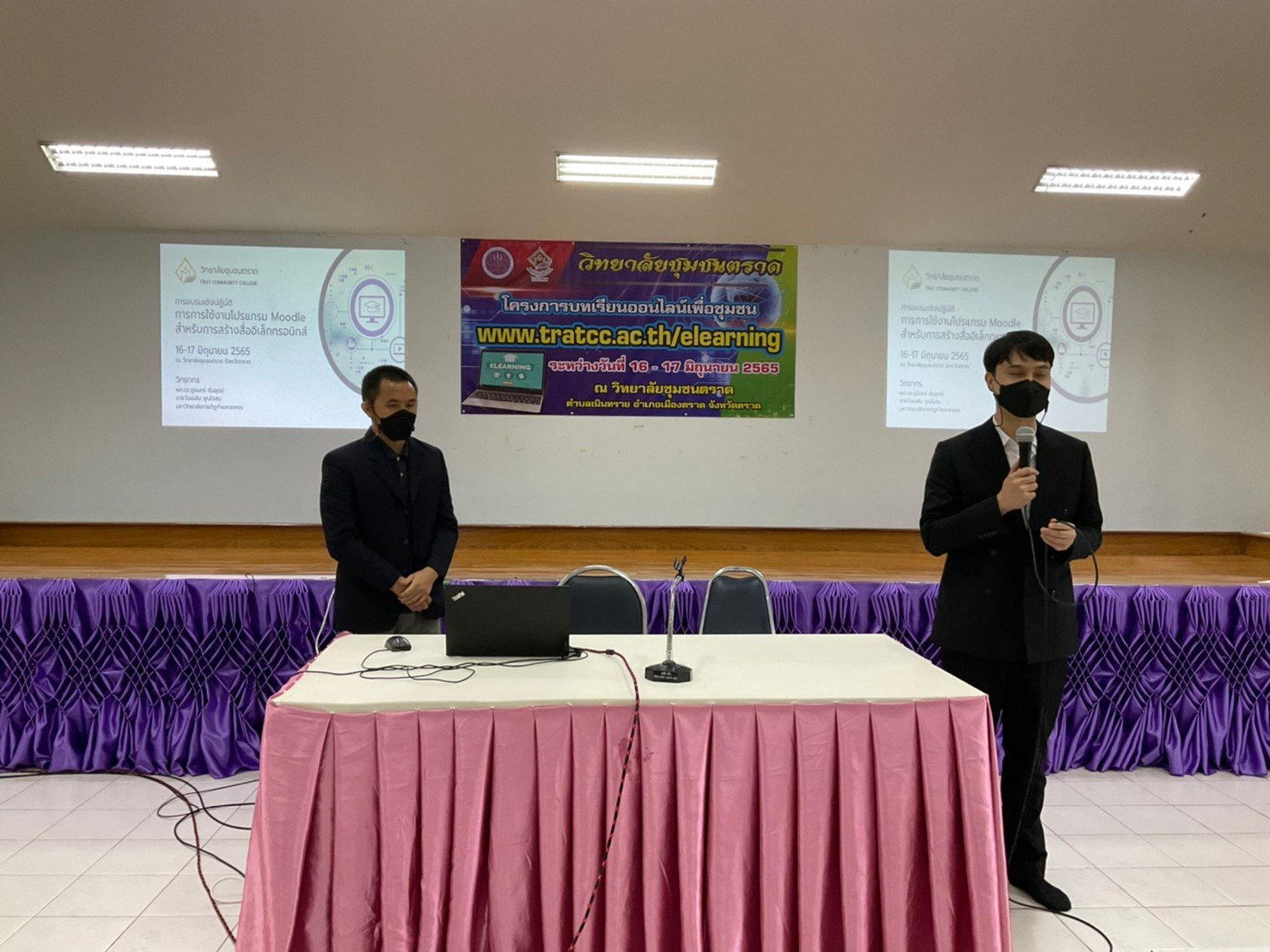 ระหว่างวันที่ 16 – 17 มิถุนายน 2565 คณะทำงานโครงการบทเรียนออนไลน์เพื่อชุมชน วิทยาลัยชุมชนตราด จัดกิจกรรม “โครงการอบรมเชิงปฏิบัติการพัฒนาสื่อบทเรียนออนไลน์” ภายใต้โครงการบทเรียนออนไลน์เพื่อชุมชน โดยมี นางสาวอำพร ไพฑูรย์ รองผู้อำนวยการวิทยาลัยชุมชนตราด เป็นประธานในพิธีเปิดการอบรม ณ อาคารวิทยบริการ วิทยาลัยชุมชนตราด อำเภอเมืองตราด จังหวัดตราด วิทยากรโดย ผู้ช่วยศาสตราจารย์ ดร. ภูมินทร์ ตันอุตม์ และ นายวันเฉลิม พูนใจสม มหาวิทยาลัยราชภัฏกำแพงเพชร