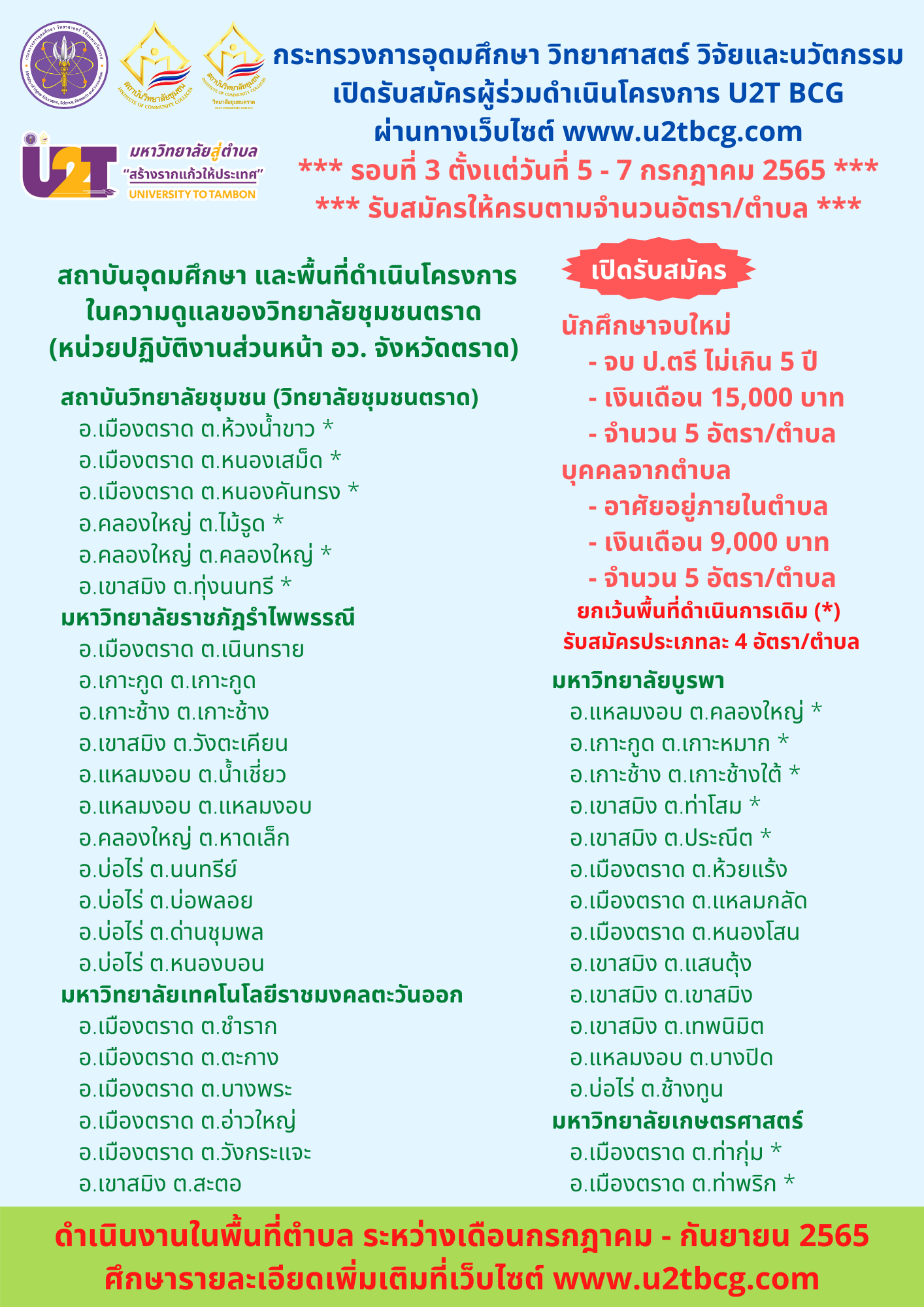 การติดตามการดำเนินงานโครงการ U2T for BCG ประจำปีงบประมาณ พ.ศ. 2565 พื้นที่ภาคตะวันออก