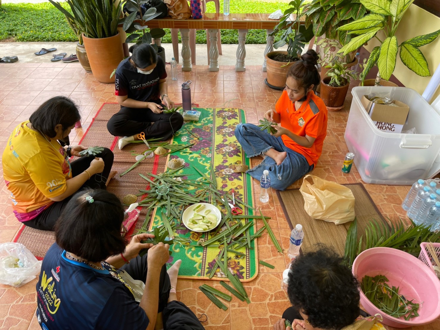 ในวันที่ 29 สิงหาคม 2565 คณะทำงานโครงการขับเคลื่อนเศรษฐกิจ และสังคมฐานรากหลังโควิดด้วยเศรษฐกิจ BCG (U2T for BCG) วิทยาลัยชุมชนตราด พื้นที่ตำบลหนองเสม็ด อำเภอเมืองตราด จังหวัดตราด นำโดย นางสาวอำพร ไพฑูรย์ รองผู้อำนวยการวิทยาลัยชุมชนตราด พร้อมด้วย นางศิริรักษ์ วรรณรัตน์ นางชุติมา ภู่มณี และผู้รับจ้างงาน U2T เข้าร่วมประชุมเชิงปฎิบัติการ “การพัฒนาผลิตภัณฑ์ มินิงอบใบจาก” ณ ศาลาหมู่ที่ 2 บ้านท่าตะเภา ตำบลหนองเสม็ด อำเภอเมืองตราด จังหวัดตราด โดยร่วมกันออกแบบ “มินิงอบ” เป็นพวงกุญแจ และ “งอบมวยผม” และเติมสีสันต์ด้วยการเพ้นท์ลายเรือสำเภา เพื่อบ่งบอกเอกลักษณ์ของบ้านท่าตะเภา ทั้งนี้มีคุณยายเฉลียว ปานดี เป็นผู้ถ่ายทอดภูมิปัญญาการสานมินิงอบ