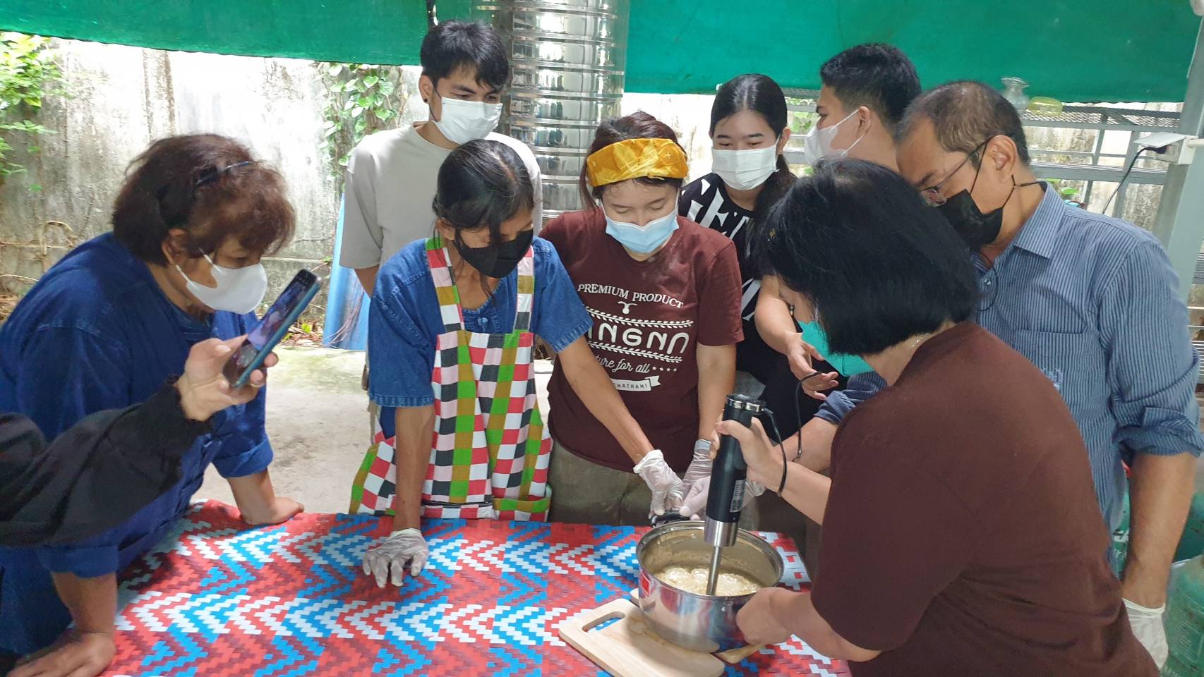 คณะทำงานโครงการขับเคลื่อนเศรษฐกิจ และสังคมฐานรากหลังโควิดด้วยเศรษฐกิจ BCG (U2T for BCG) วิทยาลัยชุมชนตราด พื้นที่ตำบลคลองใหญ่ อำเภอคลองใหญ่ จังหวัดตราด นำโดย ดร.สุดารัตน์ ตัณฑะอาริยะ รองผู้อำนวยการวิทยาลัยชุมชนตราด พร้อมด้วยคณะทำงาน ฯ และผู้รับจ้างงาน U2T for BCG ตำบลดังกล่าว จัดประชุมเชิงปฏิบัติการ “พัฒนาผลิตภัณฑ์สบู่เหลวสมุนไพรธรรมชาติจากพืชพื้นถิ่นแบบมีส่วนร่วม” ในวันที่ 31 สิงหาคม 2565 ณ วิสาหกิจชุมชนกลุ่มสตรีแปรรูปบ้านคลองจาก อำเภอคลองใหญ่ จังหวัดตราด โดยมี ผู้ช่วยศาสตราจารย์ ดร.จันทร์เพ็ญ อินทรประเสริฐ และผู้ช่วยศาสตราจารย์ ดร. กนกกรณ์ ศิริทิพย์ เป็นวิทยากร โดยได้ฝึกปฏิบัติการใช้สารเคมี การเตรียมวัสดุธรรมชาติ การทำสบู่เหลวจากสมุนไพร การฆ่าเชื้อ และการบรรจุผลิตภัณฑ์ ทำให้ได้ผลิตภัณฑ์สบู่เหลวจากใบขมิ้นพระ และใบเหงือกปลาหมอ สูตรธรรมชาติเพื่อใช้ในการจำหน่าย "ภายใต้แบรนด์Treasury of forest ขุมทรัพย์แห่งผืนป่า" ต่อไป