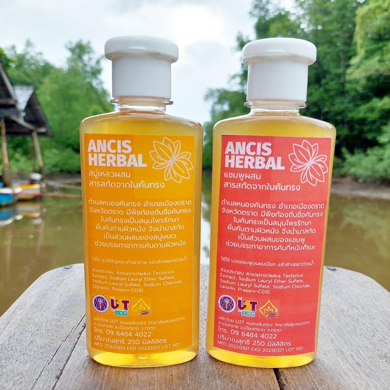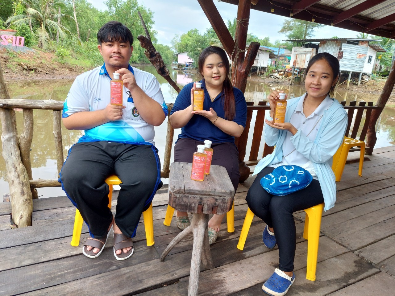 2. การแนะนำผลิตภัณฑ์สบู่เหลวและแชมพูผสมสารสกัดจากใบคันทรง ให้แก่วิสาหกิจชุมชนบ้านเกษตรตราด และวิสาหกิจชุมชนกุ้งแห้งป้าแจ๋ว