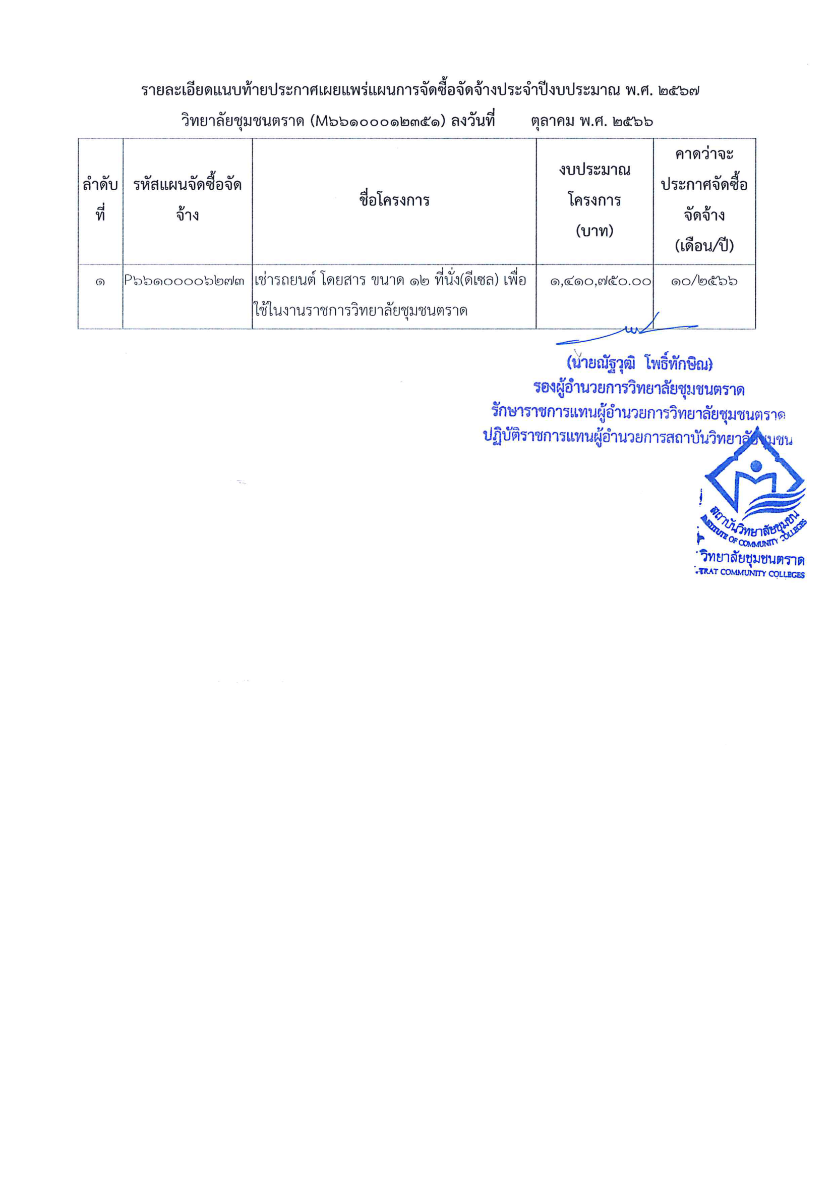เผยแพร่แผนการจัดซื้อจัดจ้าง ประจำปีงบประมาณ พ.ศ. 2567